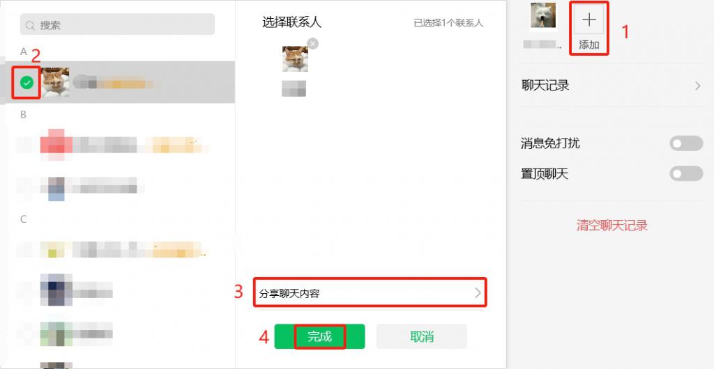 换句话说,如果你想把和 A 好友的聊天记录分享给 B 好友,直接添加再分享就 OK。