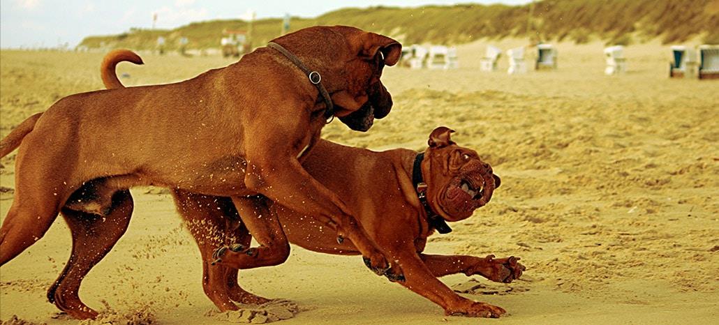 不过看着上面的图片,这两条狗是在嬉戏打闹还是在战斗?我很难区分它们……