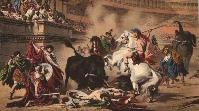 禁卫军经常在罗马奥运会上负责控制人群,但他们偶尔也会进入竞技场,在流血事件中发挥积极作用。有证据表明,近卫军参加了可怕的野兽狩猎,以展示他们的战斗能力,他们在公元52年由克劳迪亚斯皇帝主持的“naumachia”或上演的海战中扮演了一个臭名昭著的角色。在这一场景中,多达1.9万人和大约100艘船在Fucine湖上模拟海军交战。大多数参与者是囚犯和奴隶,禁卫军带着弹射器和弩炮,乘坐木筏包围了战斗,加剧了混乱并防止任何死刑犯逃跑。