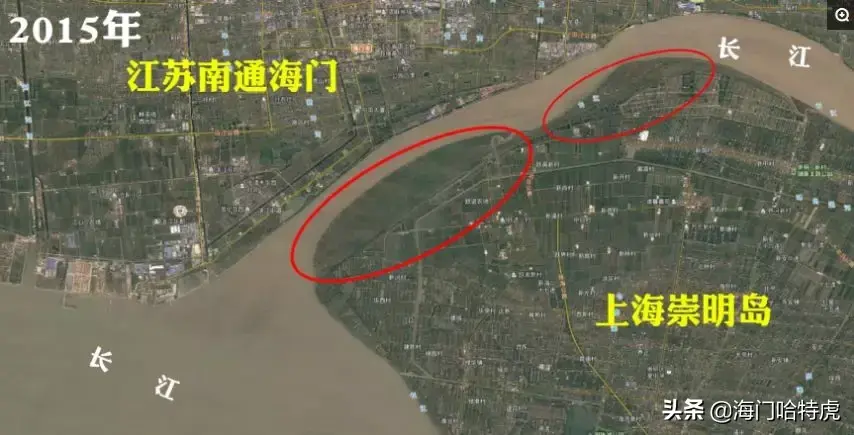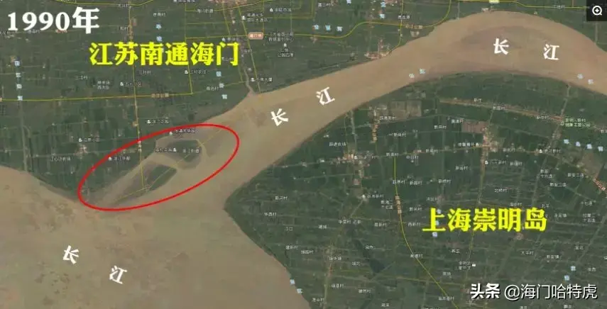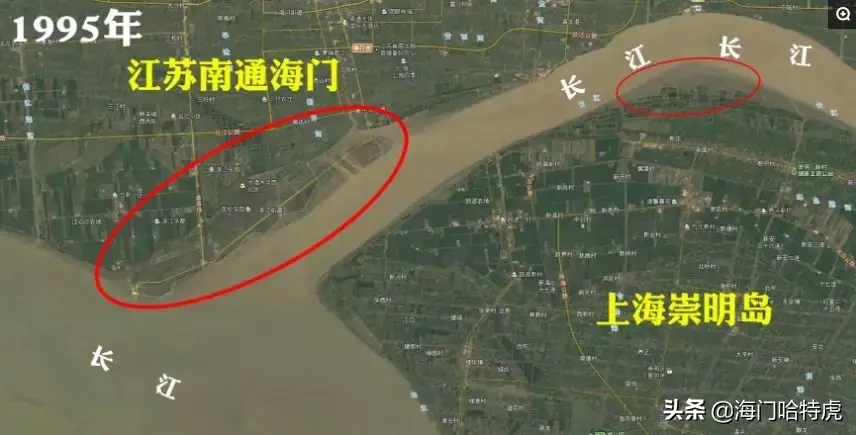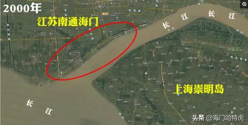 此时的崇明与海门之间的长江(夹江)宽度已被侵吞了大约三分之二,仅留的宽度大约与上海外滩附近的黄浦江差不多。