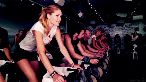 在健身房动感单车上使用负重器材。在车上举重是无效而且不安全的。运动肌群在稳定状态下进行重量训练才是最有效的。