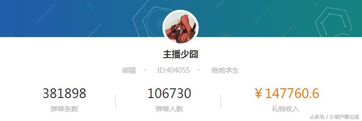 熊猫绝地求生主播,昨日小葫芦指数566,直播间弹幕条数5.9万,弹幕活跃人数1.4万,三项数据均位居熊猫绝地求生版块前五之列。据小葫芦数据统计,主播少囧过去7天,礼物收入14.7万元,直播间弹幕条数38万,弹幕活跃人数10万,平台人气峰值278万,是熊猫绝地求生版块最具人气的主播之一。