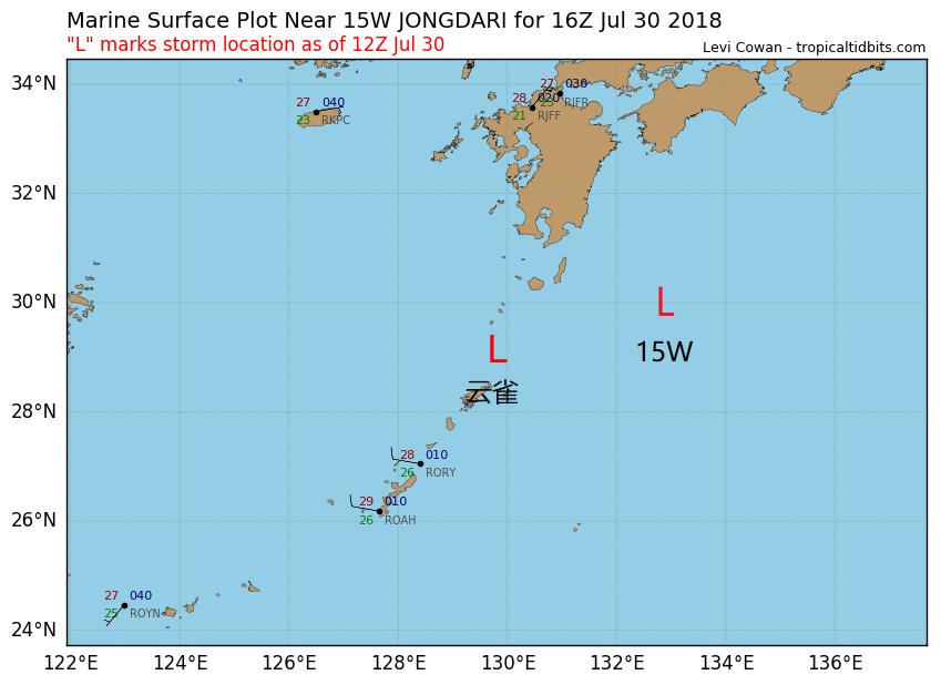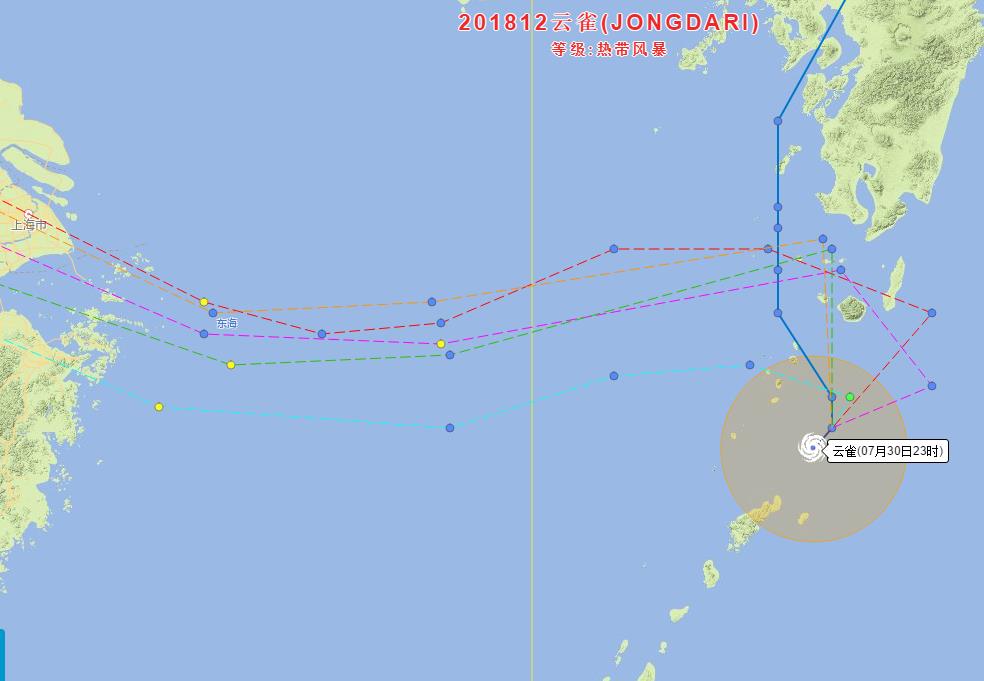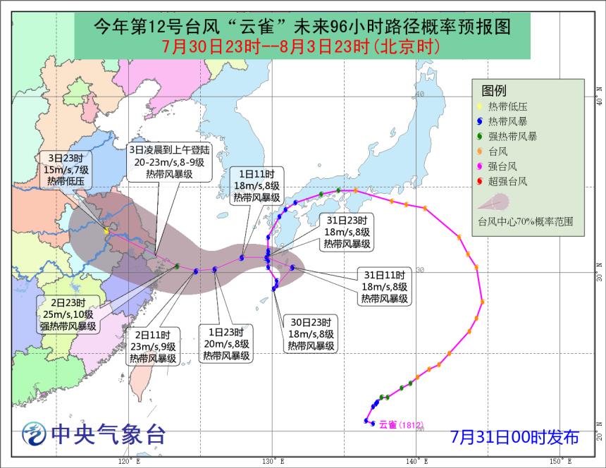 7月31日,台风“云雀”位置图以及未来走向路径