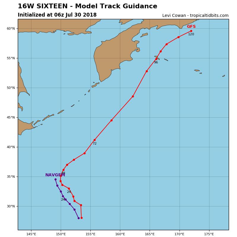 最后,追风再分享一张图,在西太平洋上,新的台风胚胎16W已经生成。不过据预测,它将远洋北上,去追随“悟空”的足迹。中国的网友们暂时不用关注。