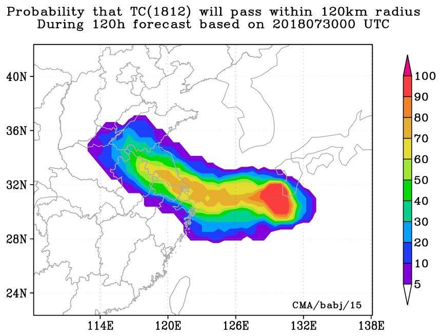 (来自中央气象台的“云雀”袭击概率图)