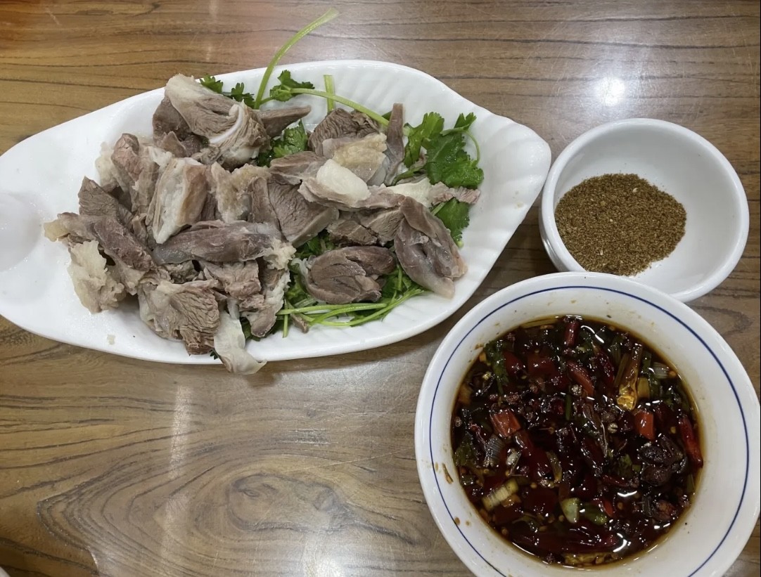 评价:本地朋友推荐的一家老店,店内空间很大,饭点人很多也不拥挤,卫生条件也不错,打扫的很干净。他家的招牌也是蘸羊肉,有干、湿两种蘸料,无论蘸哪种都很好吃。他家的羊肉切的比其他家要厚实一点,但是很软烂,一点也不塞牙。