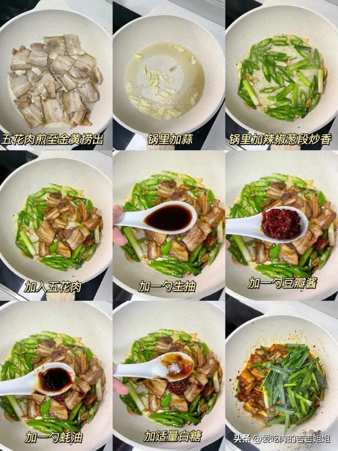 制作步骤如图所示~爱吃这种焦煎香香回锅肉的宝子都给我冲!
