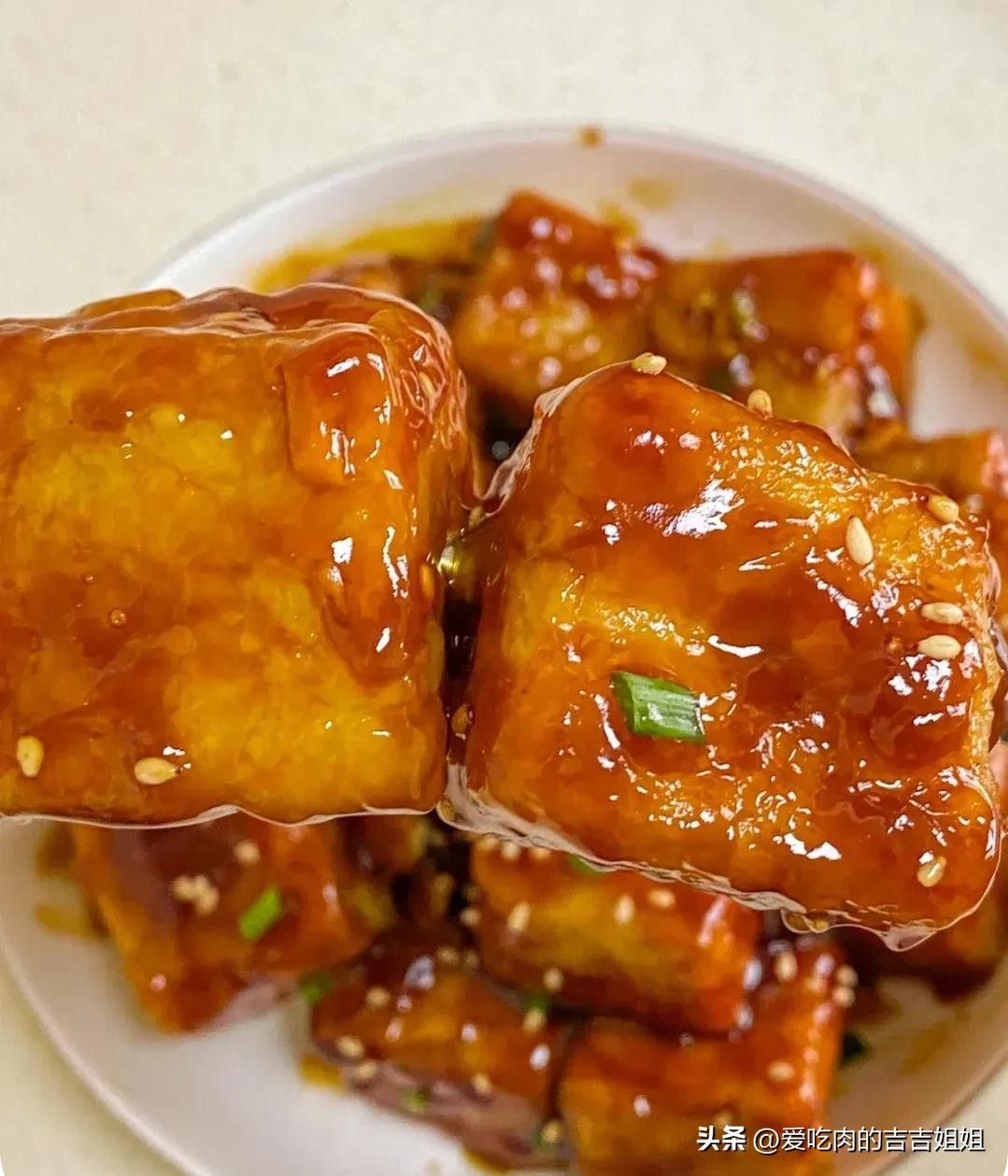 浓郁的酱汁裹满了每块脆皮嫩滑豆腐,连炫了三碗米饭都还不够,好吃到舔手指!香辣过瘾,越吃越香,拿肉都不换一上桌就秒光,全家老少都喜欢吃!