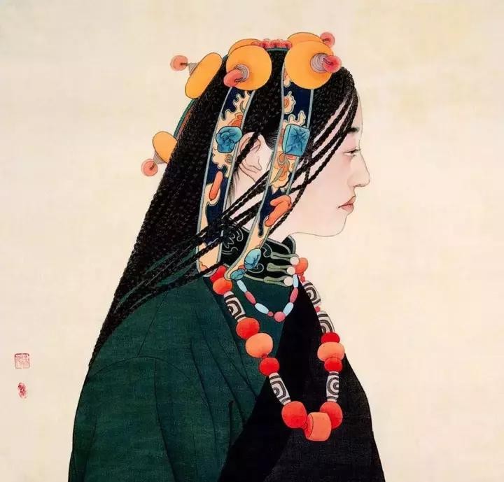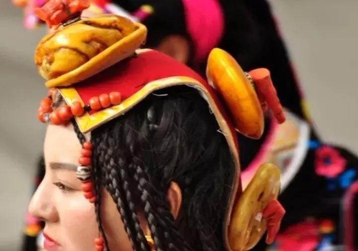 藏族妇女发型发饰,在康区和藏北牧区的妇女大多数都会将头发编成无数根小辫,然后用珊瑚、绿松石等各种天然宝石来点缀头饰。佩带时有的直接把装饰品固定在发辫中,也有将各种要戴的头饰固定在与发色相近的布上,再与发辫固定在一起,这样既美观又方便。