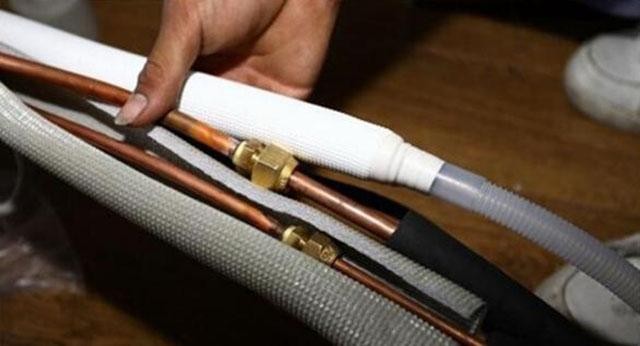 空调制冷剂使用的配管温度很低,所以会有保温层包裹,这里也是个会产生冷凝水的地方。如果保温层遭到破坏,冷凝水就会直接从管道滴下。这种情况下,只要拆除破旧保温层,重新包好配管就行。