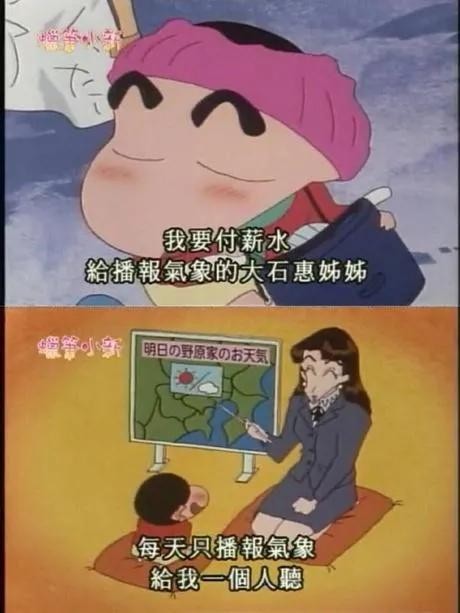 1973年出生,从1994年4月到1996年4月间担任朝日新闻台"NEWS STATION"的气象播报员,她不仅是小新的梦想,也俘获了当时全日本男人的心,凭一己之力让气象播报收视率暴涨,是日本当之无愧的气象播报第一美女。