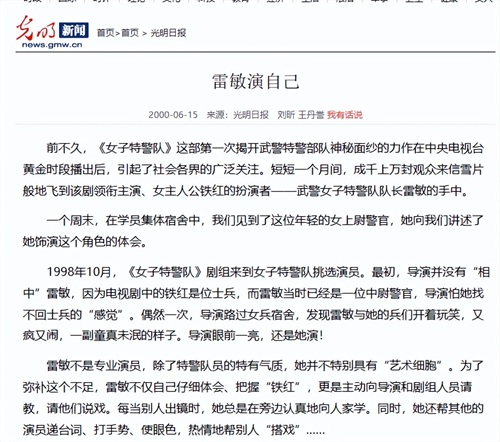 后来,1995年,只有21岁的雷敏被选中代表中国武警部队参加国际刑警组织第64届全体大会。