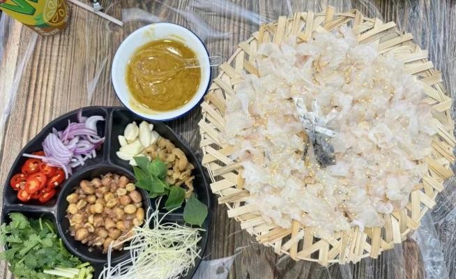 潮汕鱼生讲究的是鲜、甜、嫩,鲩鱼被片成蝴蝶状的薄片,以保持其鲜美的口感和味道。