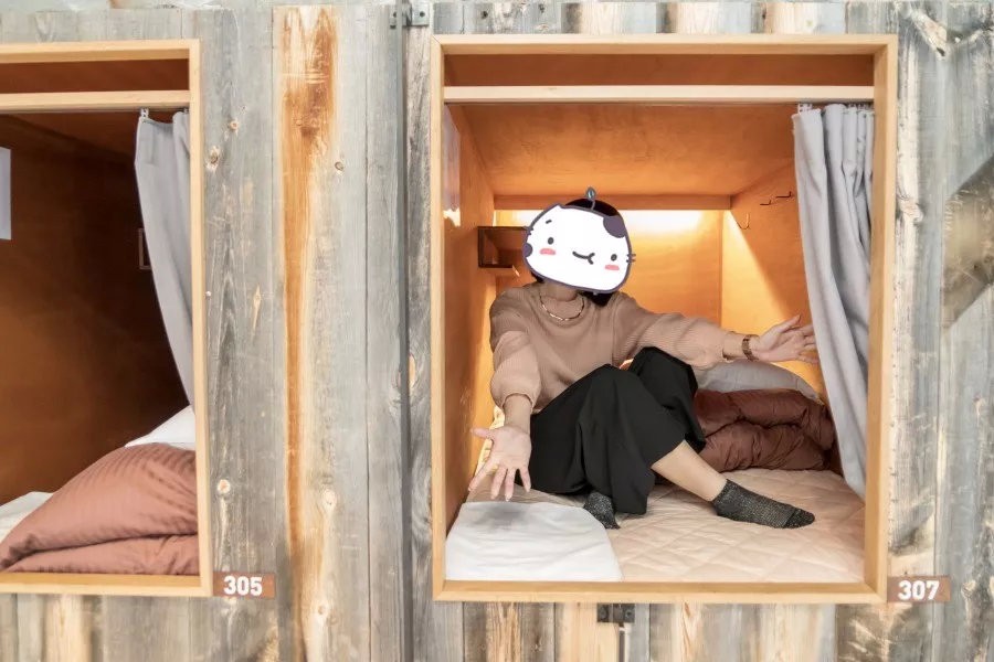 这次你体验的这家店,叫做「KIKKA」,是一家非常时尚的胶囊式旅馆。这里有很多年轻人,他们大多数并非生活拮据,只是看中了旅行途中的美好体验!