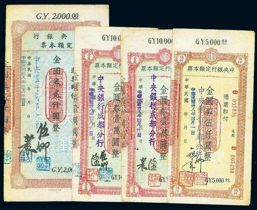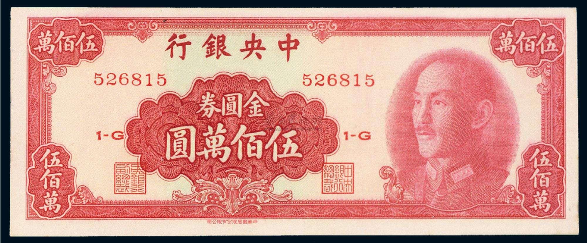 金圆券自1945年由美国钞票公司印制以来,并无资金储备,印发无限制,国内中央印制厂、中华书局等十余个厂家先后参与承印。票额分辅币1角、2角、5角至50万元、100万元、500万元等大额钞券40余种版别。