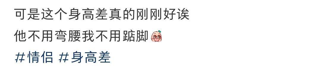 ①20 cm的差距,刚好能把下巴搭在肩上,这我还是第一次脑补画面,就是不知道有多少女生能同意这个做法呢?会不会挨揍。