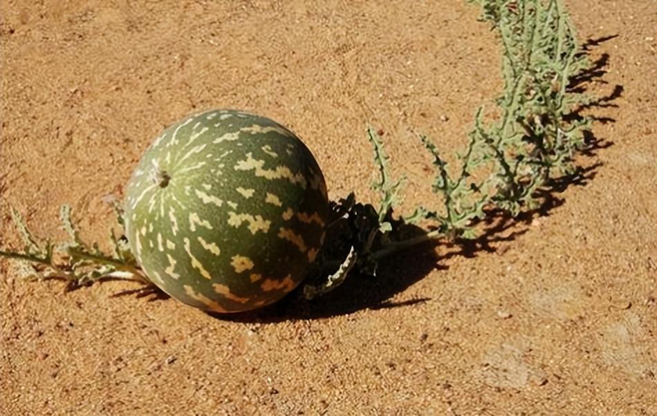 沙漠西瓜顾名思义就是生长在沙漠里的西瓜,它的外表就和我们平时吃的西瓜没什么两样,都是青、白、黑色条纹相间的外表,不仔细分辨度的话,连藤蔓和生长状况都伪装的一模一样。而且我们平时吃的西瓜也多生长在沙地里,沙漠西瓜生长在沙漠也不容易让人生疑。正是因为这些精妙绝伦的伪装,沙漠西瓜才总能勾引到人的目光。但是它的味道却远不及真正的西瓜香甜,甚至还有危险。