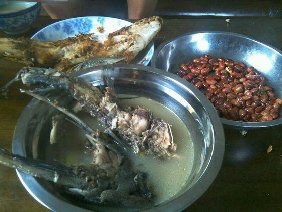 炒盘花生米,煎一条泰鲮鱼,煲清道夫鱼汤。美味的大餐就做好了