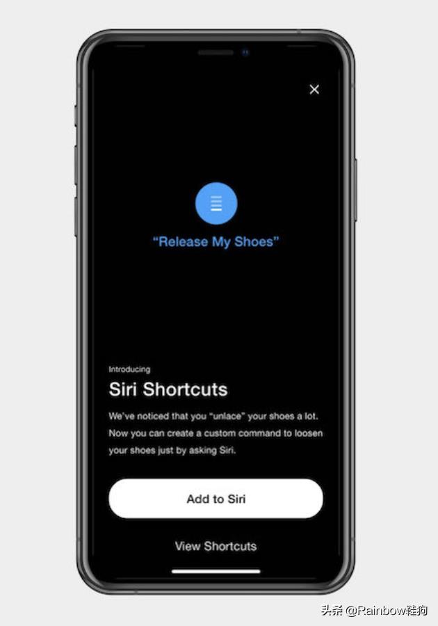而最近这款APP开放了Siri控制接口,通过ios手机内Siri设置中设置“我的快捷指令”结合捷径APP使用,即可通过个性自定义自己的个性语音来让Siri控制自己的鞋带自动系紧。