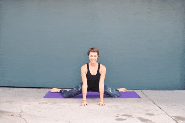 简易坐坐在垫子上,吸气,脊柱延展,呼气,身体前屈到自己的幅度。保持3~5组呼吸后。身体向左侧平移,右胸找左膝盖保持3~5组呼吸后身体向右侧平移,左胸找右膝盖。保持3~5组呼吸身体回正,起身,回到简易坐